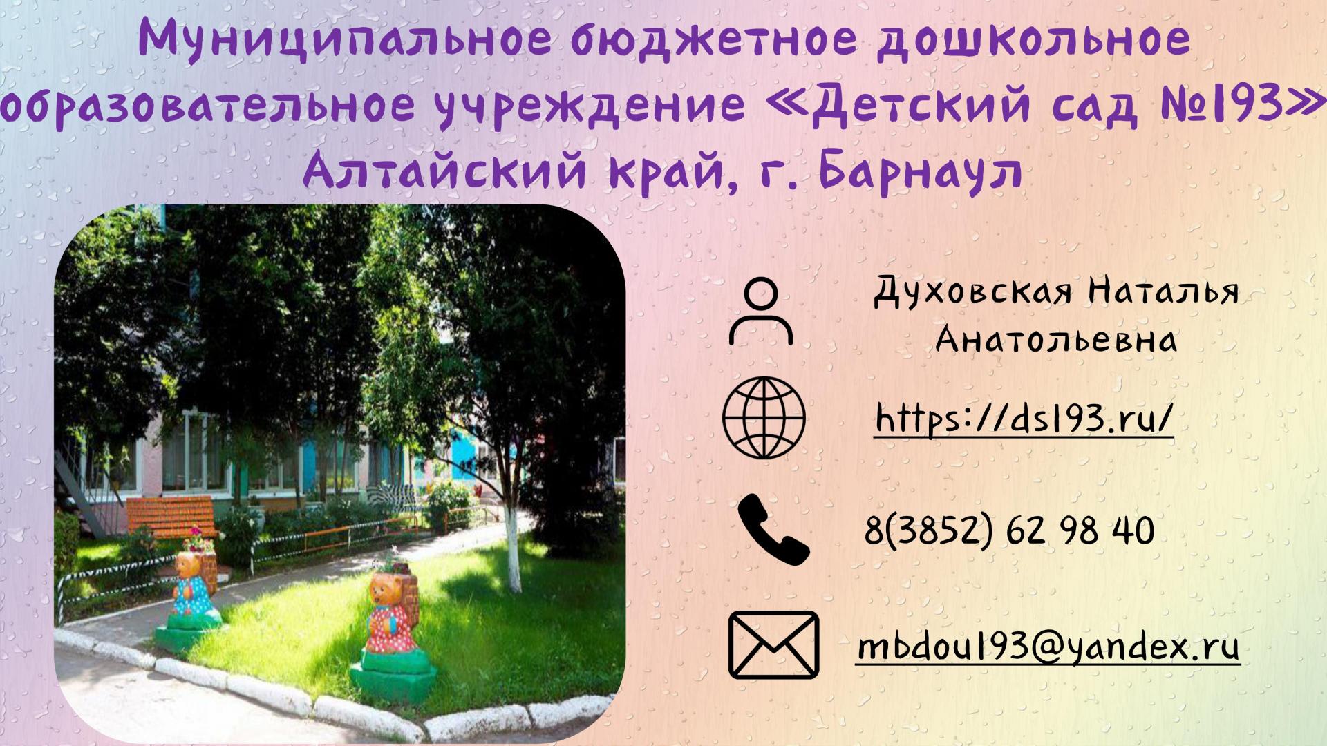 Заведующий детского сада: Миндерова Инна Вячеславовна