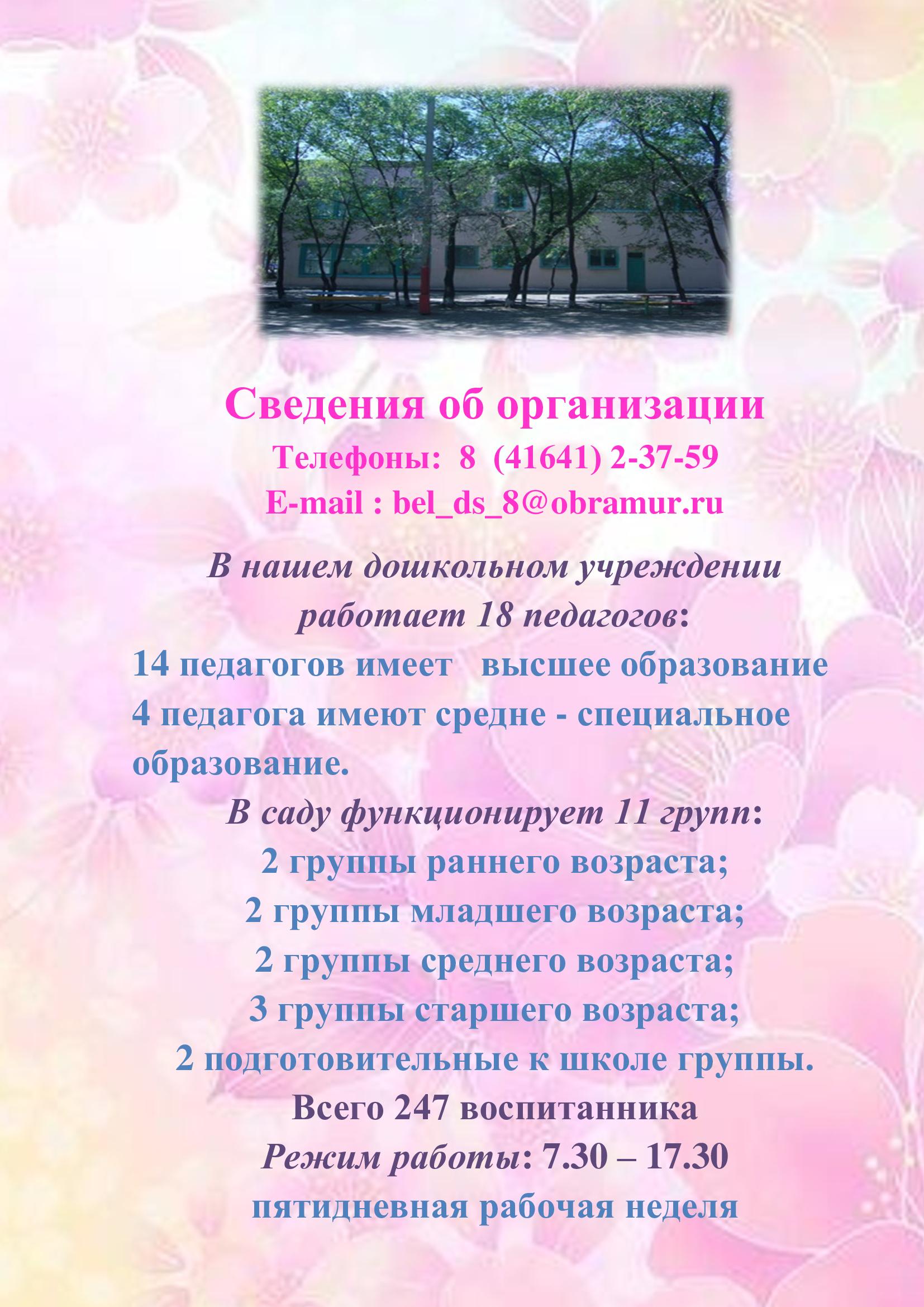 Электронная почта организации: detskiysads@mail.ru