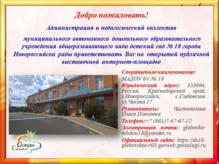 Муниципальное автономное дошкольное образовательное учреждение общеразвивающего вида детский сад № 18 "Остров сокровищ"муниципального образования г. Новороссийск