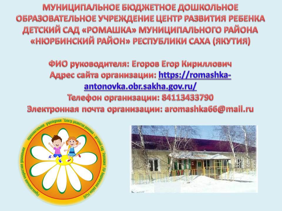 Организация: МБДОУ «ЦРР – д/с «Чуораанчык» им. М.Т. Спиридоновой с. Чурапча»