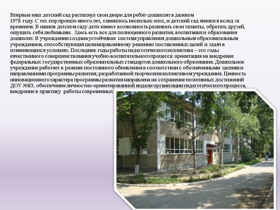 Режим работы: ДОУ функционирует в режиме полного дня (12-часового пребывания), пятидневная рабочая неделя. Выходные: суббота, воскресенье и нерабочие праздничные дни в соответствии с ТК. РФ, нормативно-правовыми актами правительства РФ.